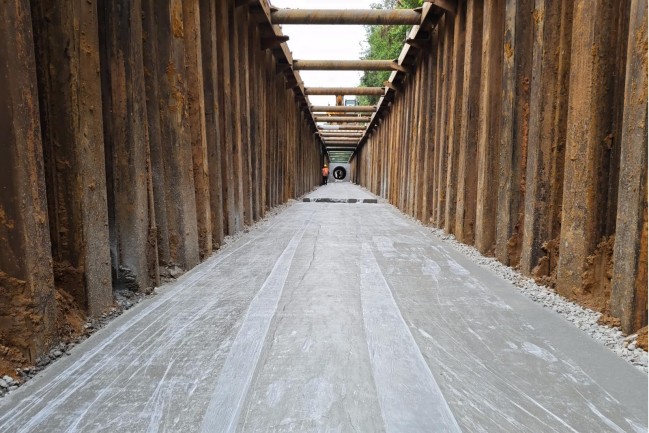 在广东省湛江市中心城区重要点位地下管网更新改造项目一期工程现场,项目建设者已完成金德路与麻遂路交叉口设施设备更新项目350米钢板桩支护、200米DN1650雨水管道安装。项目部通过增加施工人员与机械、利用夜间施工赶进度等方式,积极协调解决柳青路南山涵洞、麻赤铁路的图纸与拆迁问题,为后续进场施工扫清障碍。