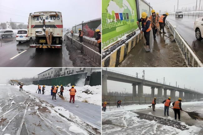 降雪期间及雪后,城建四公司都市阳台热源厂配套道路项目部、黄河大道二期二标项目部迅速行动,践行社会责任。项目部党员干部带头,党员干部带头冲锋,带领职工奔赴项目周边主次干道、人行步道等关键区域开展清雪作业,同时调配设备辅助除冰,争分夺秒消除道路安全隐患,有效保障了过往车辆和行人安全,彰显了集团将民生需求放在首位、守护市民安全出行的责任坚守。