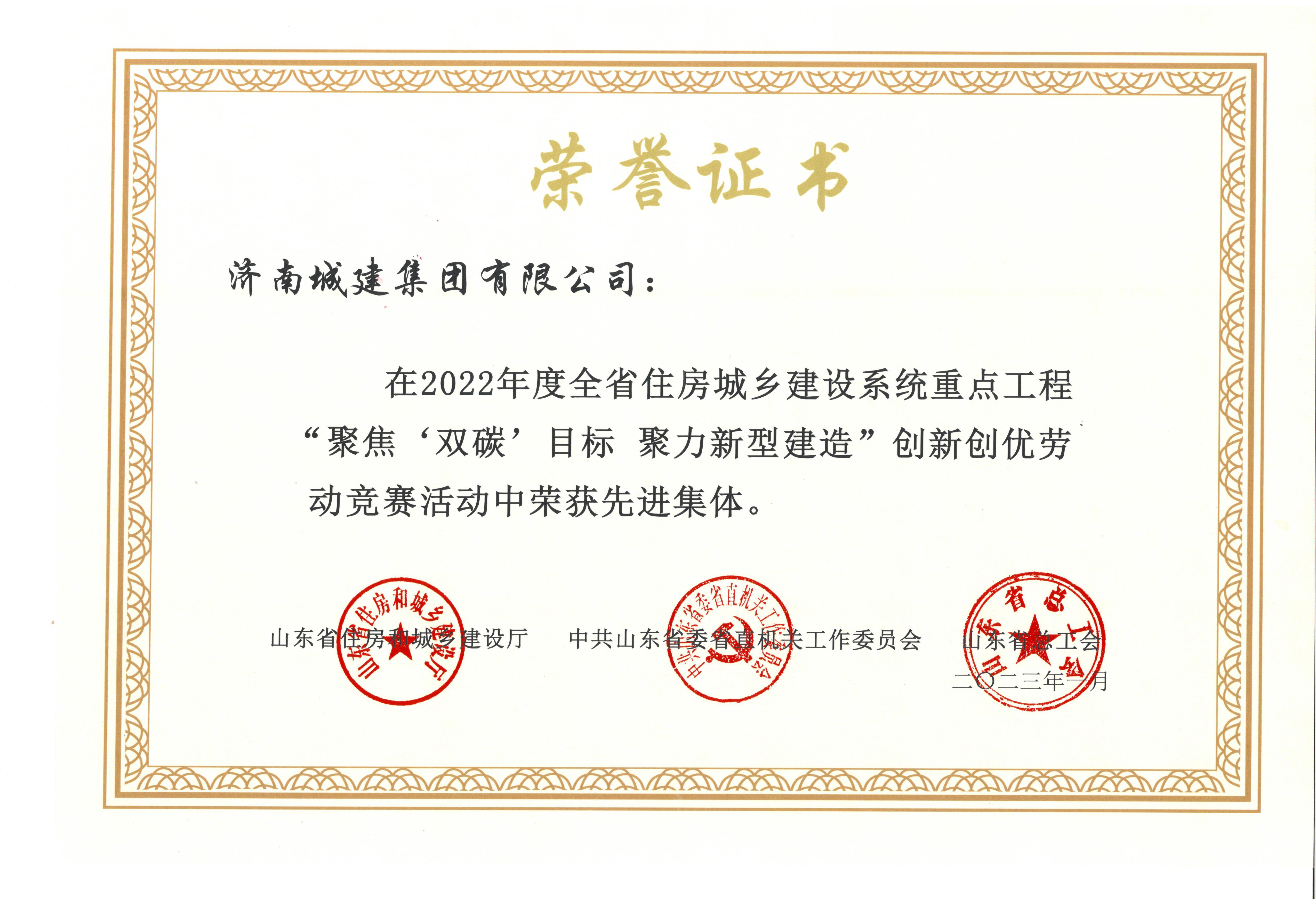 集团获评山东省2022年度建设系统重点工程“聚集 双碳目标 聚力新型建造”创新创优劳动竞赛活动先进集体