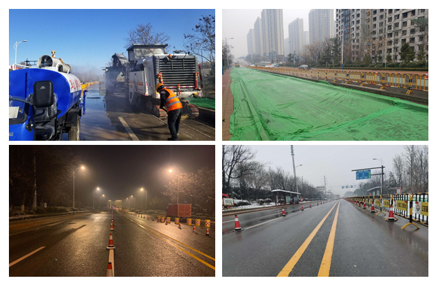 超前策划,优化方案,保证施工有序推进。“工期紧、任务重”是本工程最大的特点,各种新建管线约20公里,管线安装工期仅有40天。按照最初的设计方案,各管线位置分散在快车道、人行道、绿化带等不同的区域,施工区域大,管线高程冲突、干扰明显,无法实现快速、同时施工,且全线受多处河道、绕城高速、交叉路口及横穿管线等难度较大节点制约,不利于后期恢复,也不能满足施工期间的通行要求。经过多次研究重新确定各种管线位置分布,将所有管线集中在一起施工,按照“确保大管径位置、小管径上翻”原则,采取“大管线靠南超前施工,小管线靠北跟进施工”形成流水作业,保证高效建设、快速恢复、按时通车。工程开工后,各参建分公司迅速行动,调集精锐力量和充足资源保证快速施工,3月30日按期完成所有管线安装,4月15日道路基层全部完成,4月20日附属工程全部完成。