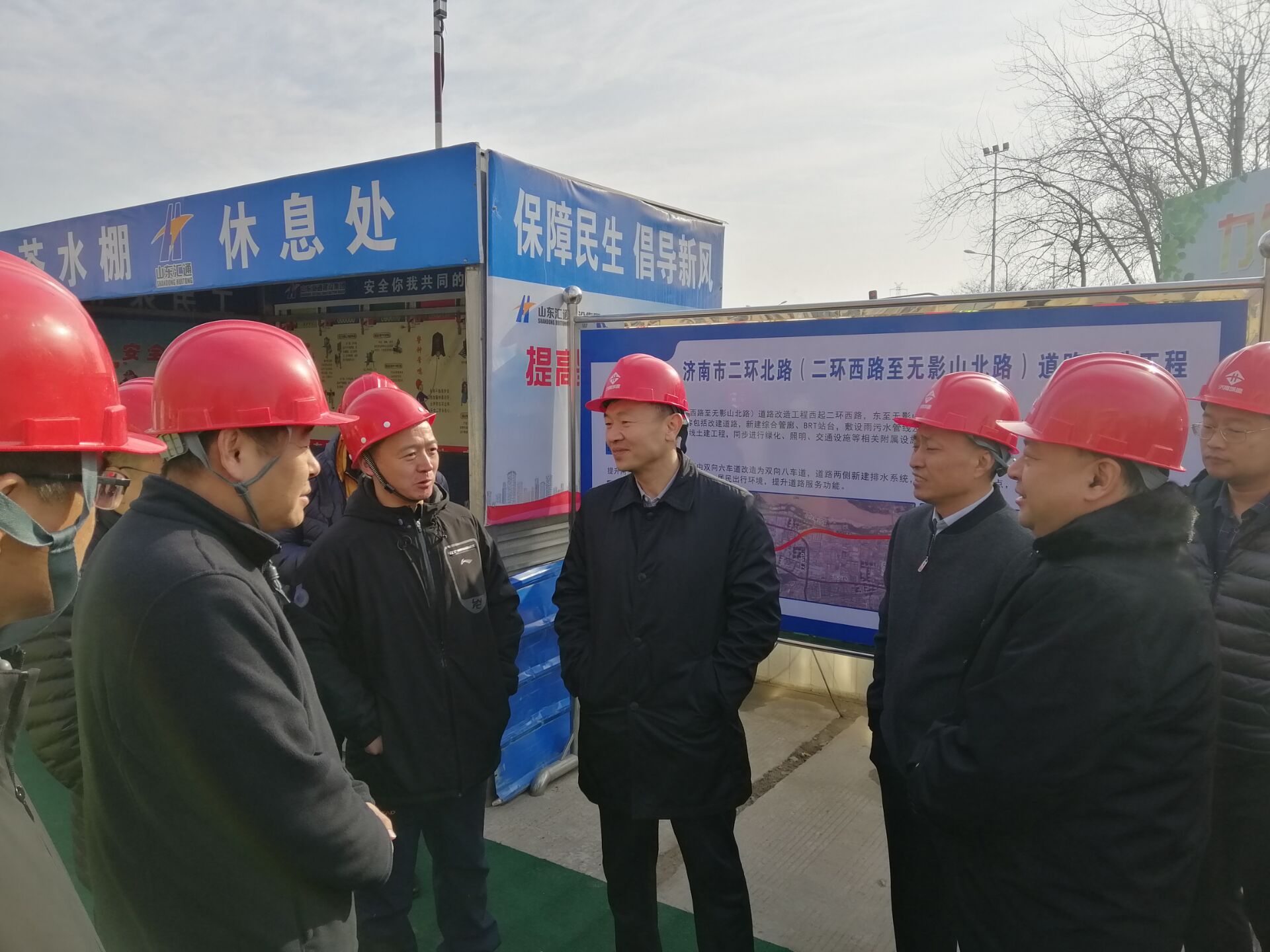 1月15日,济南市天桥区委副书记、区长窦虎等一行8人察看由五分公司承建的二环北路(二环西路至无影山北路)道路改造工程第四标段。