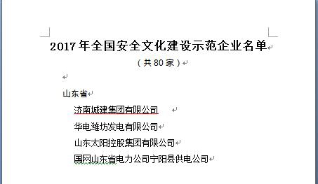 12月25日,中国安全生产协会下发《关于命名2017年全国安全文化建设示范企业的通知》(中安协综合〔2017〕38号),集团获得2017年“全国安全文化建设示范企业”(全国共80家企业,山东省仅有4家)荣誉称号。