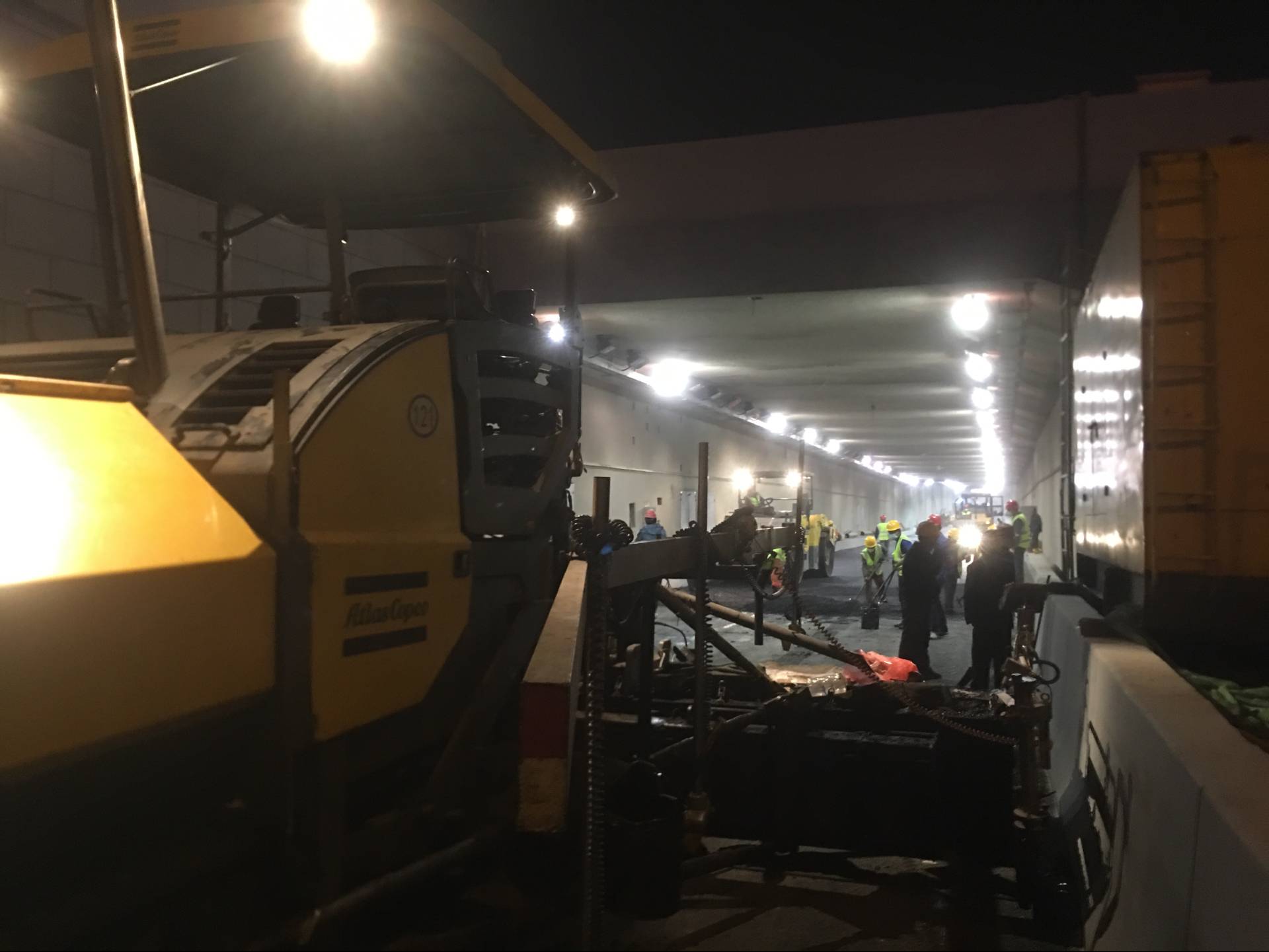 11月25日零点,顺河高架南延二期工程隧道地面道路沥青摊铺全面展开,工程进入最后冲剌阶段。至29日晚9点,历时五天,圆满完成隧道地面道路沥青面层摊铺,备受关注的顺河高架南延二期工程即将全面通车。