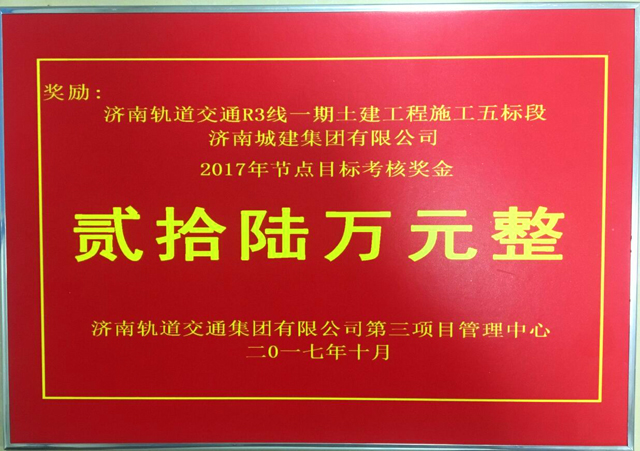 集团轨道交通R3线一期土建工程五标段获节点目标考核奖26万元