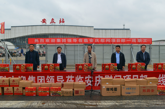 10月4日,安庆的中秋丹桂飘香,迎宾西路工地彩旗招展。集团党委书记、董事长汤继沂带领副总经理史红军,纪委书记王维锋,工会主席、总经济师朱相波,副总经理王翔以及相关部室、分公司负责人来到集团安庆地区项目部,对节日期间依然奋战在施工一线的项目部全体干部职工进行节日慰问。