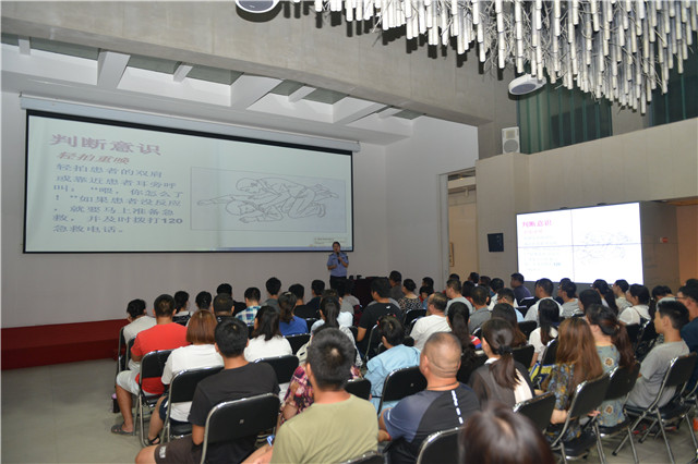 刘亚楠老师从实际生活出发,通过视频、图片和案例,对120到来之前的紧急自救互救,应对雾霾、家庭装修等环境污染,职业病的预防,中医养生保健等四个方面的知识做了生动讲解。通过与职工互动的方式,介绍了许多实用的自我保健方法,手把手地教职工测量血压,寻找人体穴脉等,并针对如何从市面上纷繁复杂的日常保健器材中,遴选适合自己的产品以及如何辨识权威产品质量检测证书给予了指导。
