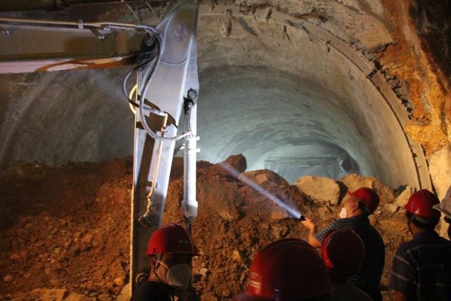 顺河高架南延二期隧道马鞍山至山体公园段共计386米,为整个隧道最长的一段区间,本段紧靠马鞍山山体,全部为坚硬石方。自今年年初主洞开始掘进以来,二分公司在集团领导及相关部室的大力支持下,集分公司主要力量,群策群力、科学指挥,克服了围岩坚硬、掘进缓慢、渣土外运受限等各种困难,通过科学组织与管理施工步序、不断加大机械及人员投入、积极协调外部关系等措施,实现了24小时不间断施工、工序间无缝衔接、日夜不间断出渣,为隧道贯通打下了坚实的基础。