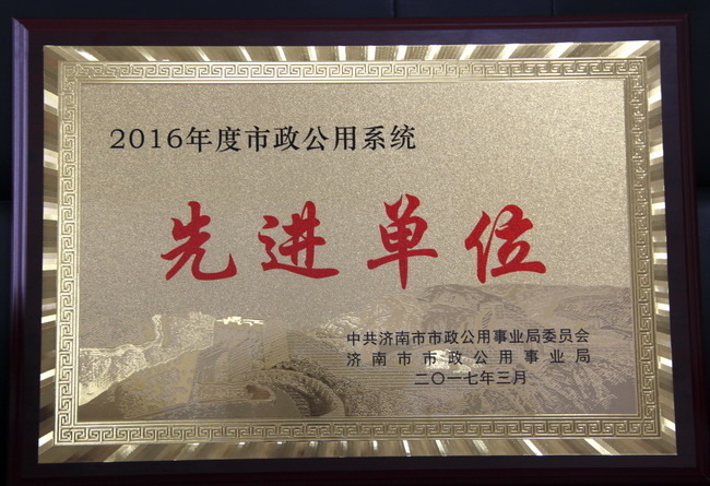 会议宣读通报了城区道路桥梁考核情况、城区河道和全市污水处理考核情况;通报表彰了2016年度市政公用系统先进单位和先进工作者。根据年度工作责任目标考核情况,市市政公用事业局对济南城建集团等15个先进单位、200名先进工作者予以通报表彰。在先进单位颁奖仪式上,牟晓岩总经理代表集团上台领奖。