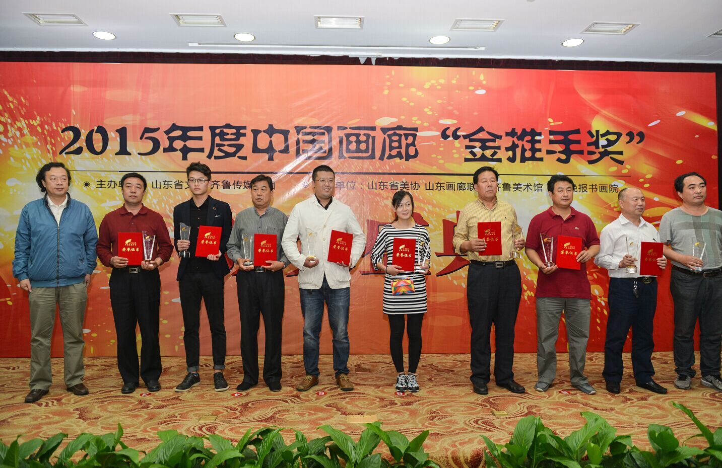 10月15日下午,由山东省文联、齐鲁传媒集团主办,山东省美术家协会、山东画廊联盟、齐鲁美术馆、齐鲁晚报书画院承办的2015年度中国画廊“金推手奖”颁奖盛典在舜耕山庄举办。集团大成美术馆荣获2015年度山东十大民营美术馆。集团工会主席、总经济师朱相波等出席颁奖盛典。