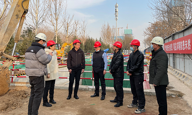 孙培梁副总经理在施工现场详细询问了西环电缆沟工程施工进度和岁末年初施工安排,现场察看5#始发井施工情况,并对施工现场安全文明施工、疫情防控等措施表示认可。他强调,项目部要深刻汲取栖霞市五彩龙金矿发生爆炸事故的教训,防患于未然,全面排查各类风险隐患,开展自查自纠整改工作,同时面对当前日益增大的疫情防控压力,要将防控措施做实做细,确保返乡、复工人员安全到位。