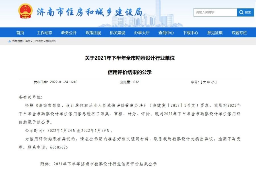 近日,济南市住房和城乡建设局公示了2021年下半年度全市勘察设计行业信用评价结果,集团在全市452家参评单位中脱颖而出,取得勘察设计行业信用评价考核3A最高等级的荣誉。