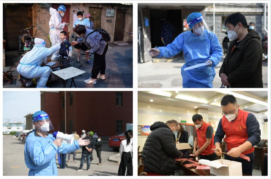 一声号令冲在前。4月26日下午,接到市委市政府和建设集团组织人员参与社区疫情防控工作的紧急通知后,集团党委高度重视、快速响应,304名党员干部职工火速集结,组成下沉社区疫情防控志愿服务队。4月27日,集团志愿服务队302名同志进驻市中区十六里河街道和天桥区北园街道的31个社区,迅速开展核酸检测、物资调配等工作;4月28日,志愿服务队2名同志赶赴济阳区济北开发区派出所,开展疫情防控排查随访工作。而在济南东、遥墙高速出入口和大东环济南服务区,集团11名志愿者也已奋战40余天,严格做好车辆查验、扫码登记、返济司机抗原检测等工作,坚决守好外防输入第一道防线。
