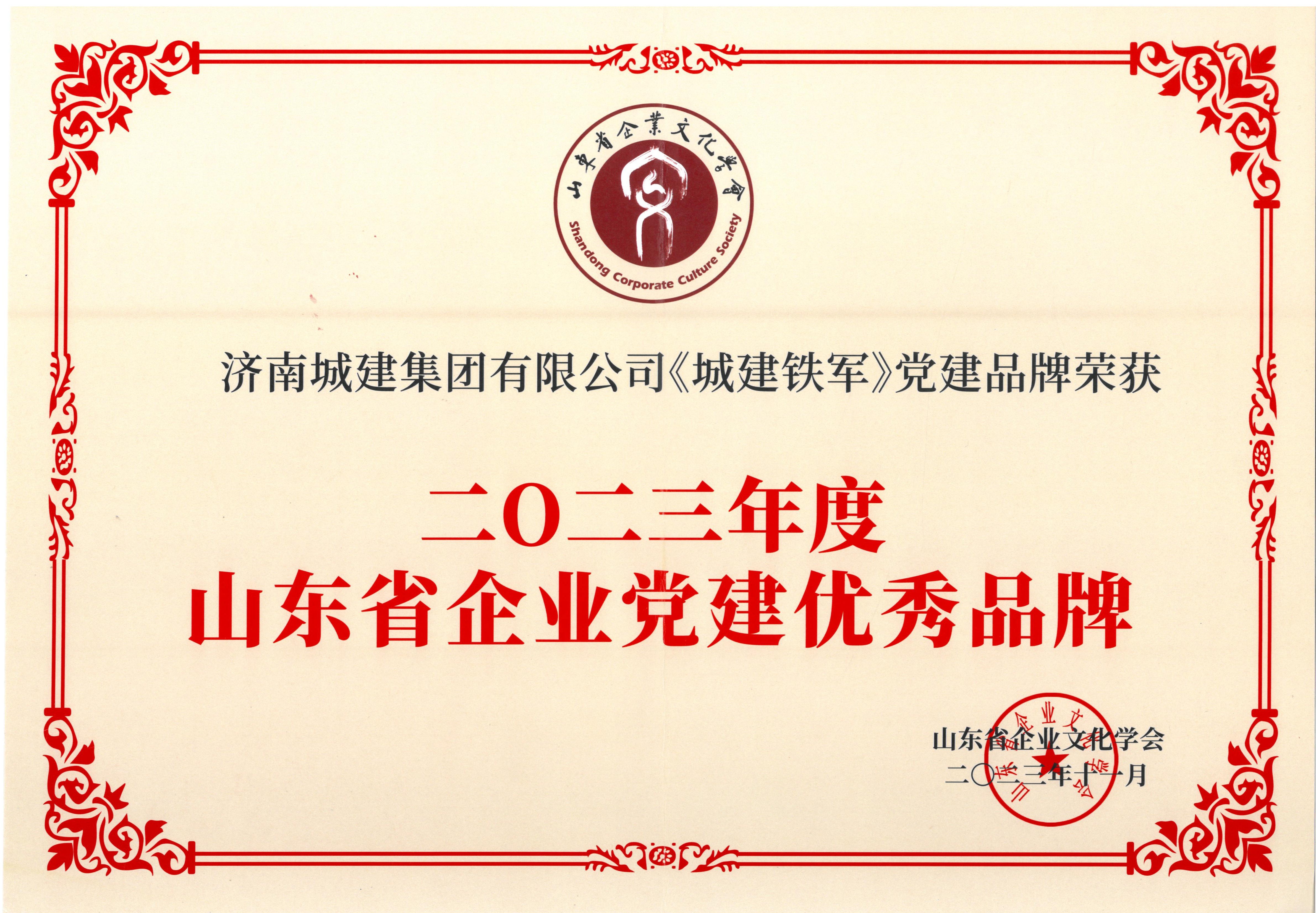 “城建铁军”党建品牌荣获山东省企业文化学会“2023年度山东省企业党建优秀品牌”