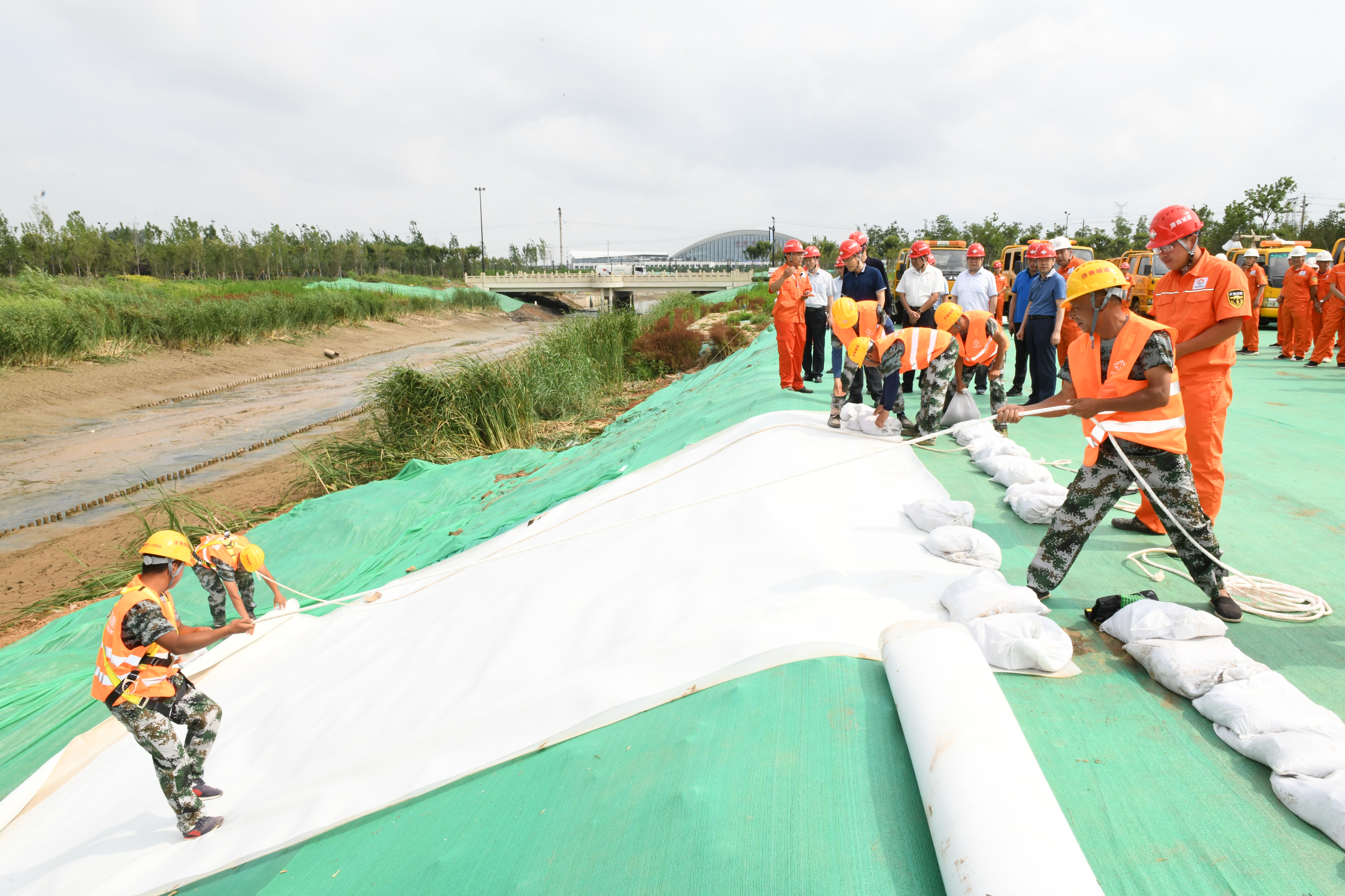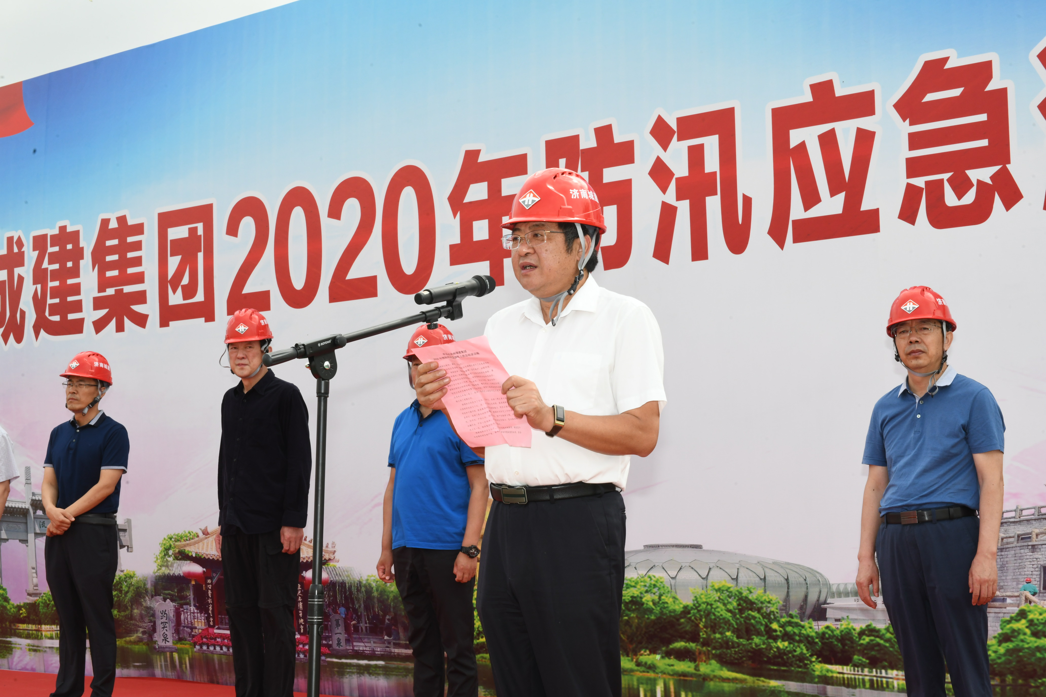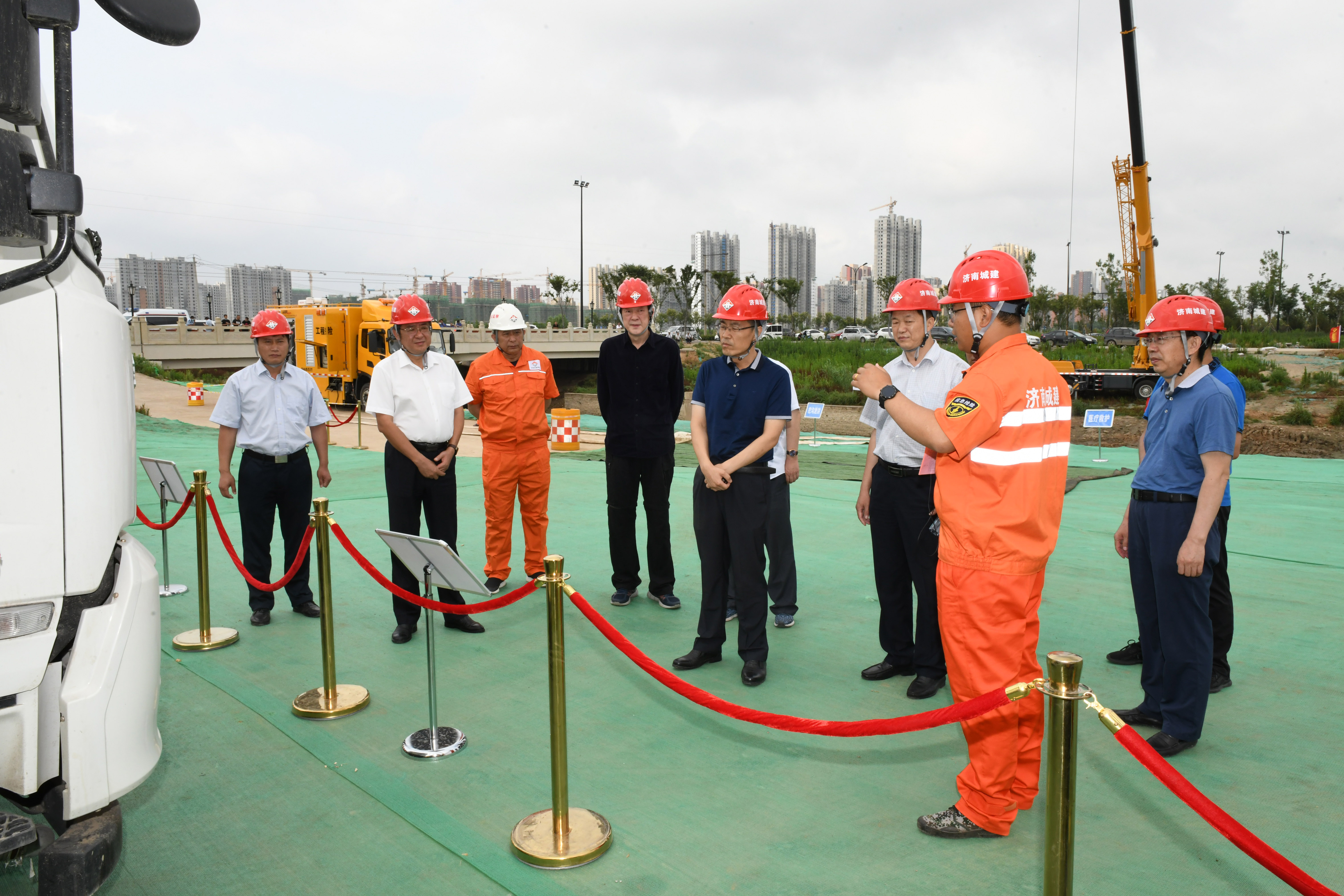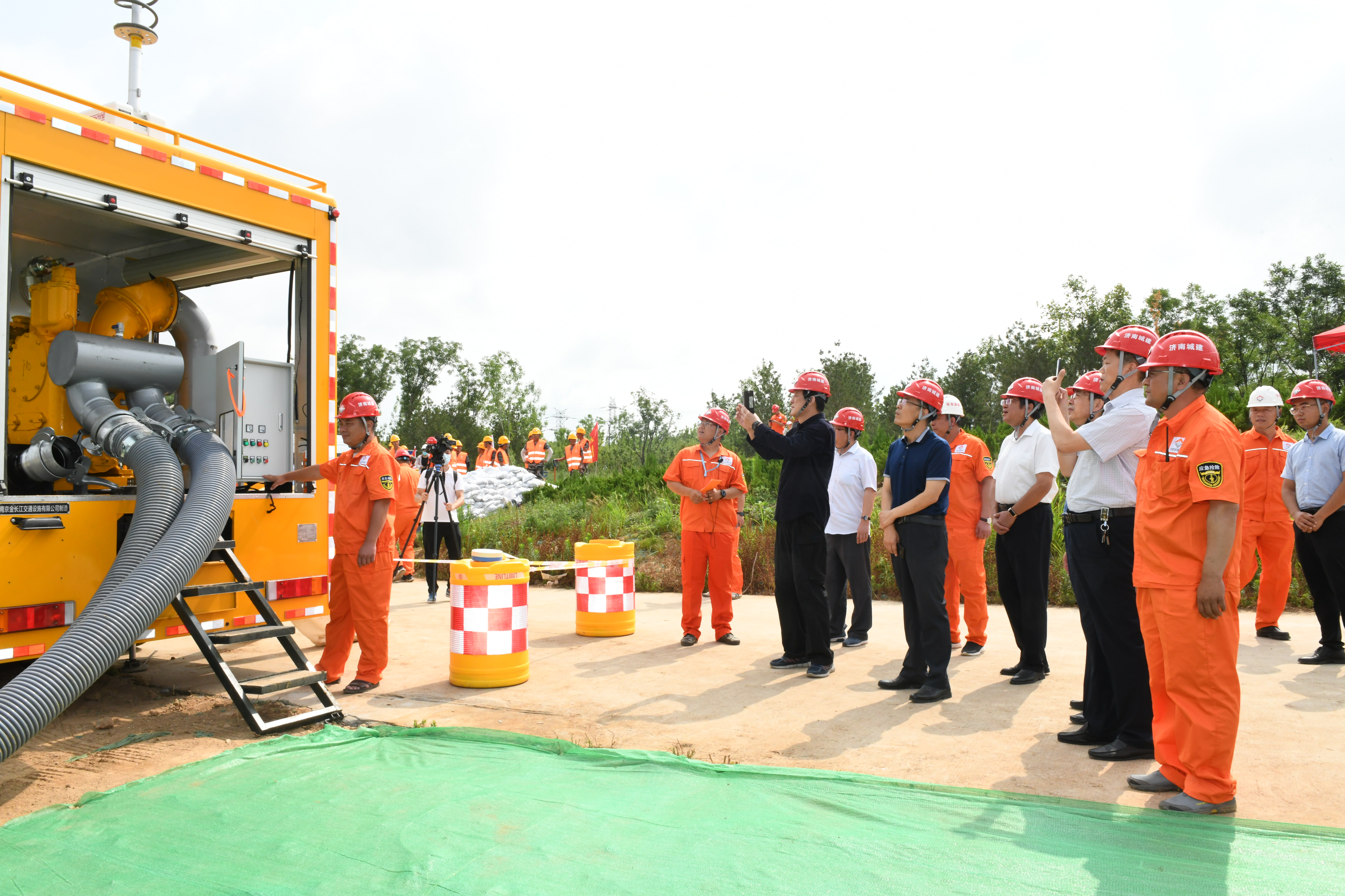 为进一步检验集团防汛应急预案的科学性、有效性和可操作性,提高应急反应和防汛抢险能力,6月24日上午,在集团龙脊河项目施工现场举行“济南城建集团2020年防汛应急演练”。山东省应急管理厅防汛抗旱处处长王秀中,济南市应急管理局副局长魏强、党组成员李学军、防汛抗旱处处长周凯、科长杨志斌,集团总经理牟晓岩,副总经理吕守明、马烽及分(子)公司经理、安全分管经理等150余人参加了演练活动。