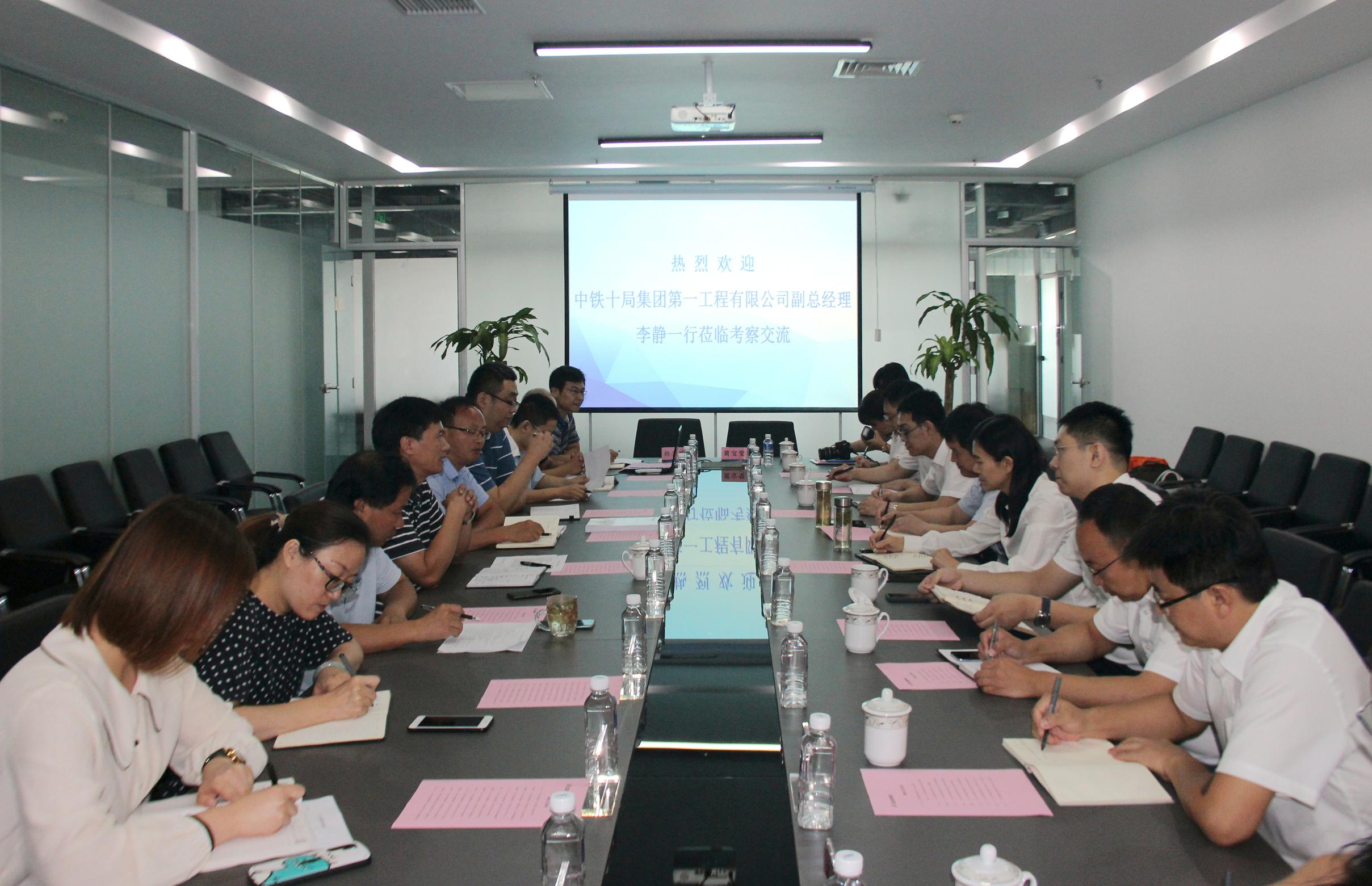 8月27日上午,中铁十局集团第一工程有限公司副总经理李静等一行14人到集团五分公司考察交流。集团副总经理兼五分公司经理马烽等在中海会议室座谈交流。