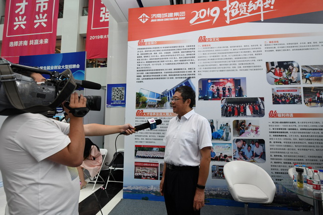 随后,牟晓岩总经理接受了济南电视台都市频道专题采访。采访过程中,牟晓岩总经理介绍了此次招聘人员岗位设置、专业需求以及薪酬待遇等情况。他表示,城建集团是具有90年发展历史、专业从事城市基础设施投资、设计、施工、技术服务的国有大型企业集团,拥有市政公用工程施工总承包特级资质、工程设计市政行业甲级资质,在山东省建筑业综合实力30强中排名第7位,位居山东市政行业龙头、全国市政行业前两名。集团职工薪酬待遇位居全国同行业前列,在“五险一金”基础上,增加了企业年金和补充医疗保险,多措并举地为职工创造良好的工作和生活环境,让职工共同享受企业发展成果。