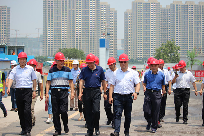 7月3日上午,济南城市投资集团有限公司副总经理董文湖,济南水务集团有限公司董事长魏洪军、总经理崔鹏炜、副总经理王建军一行到八分公司承建的旅游路水厂项目察看工程建设进展情况。集团党委副书记、总经理牟晓岩、总工程师许庚及项目负责人陪同。