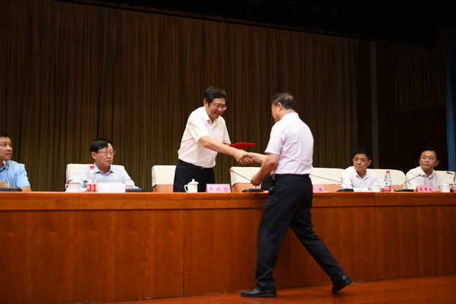牟晓岩会长向王传凯颁发第二届理事会秘书长聘书