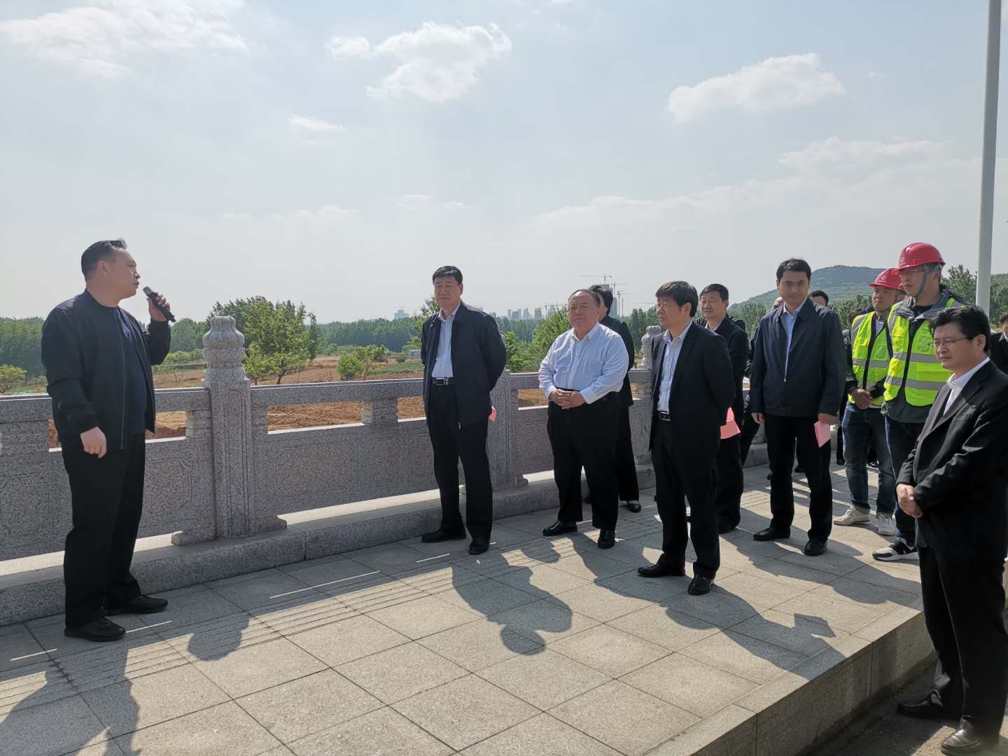 4月26日,枣庄市委副书记、统战部长梁宪廷察看集团承建的枣庄世纪大道总承包工程一标段工程。薛城区委副书记、区长张伟及世纪大道项目相关负责人陪同。