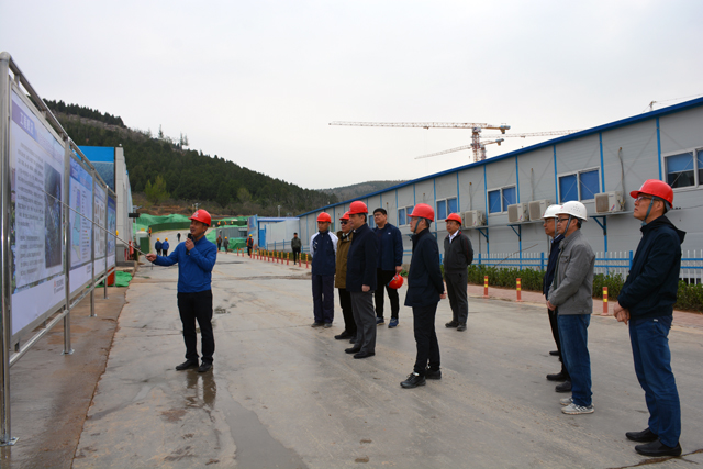 李国祥董事长(前排右二)察看施工现场