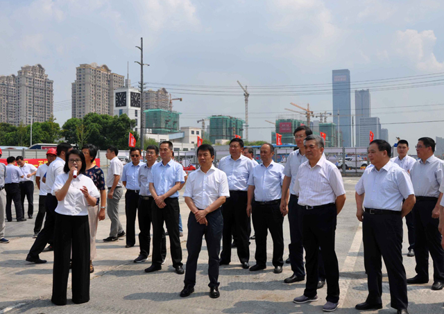 8月31日上午,江苏省人大常委会人事代表联络委员会主任刘广忠、泰州市长史立军、泰州市人大常委会副主任王建一行察看六分公司承建的泰州永定路施工现场。