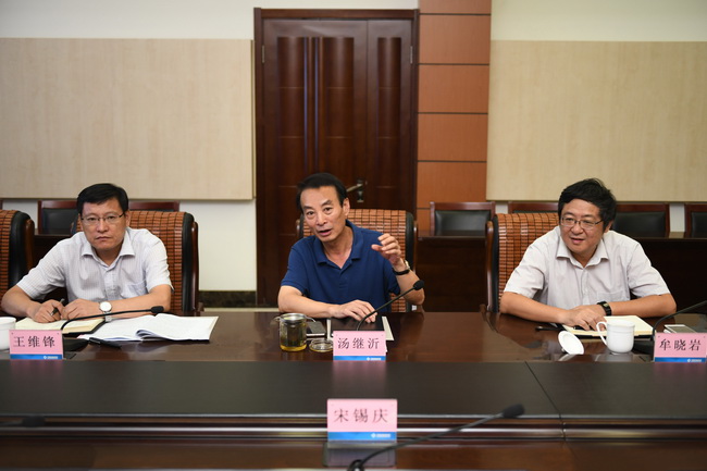 汤继沂董事长结合集团发展历程就企业发展经验等作了重点介绍。他指出,集团从1997年最初净资产只有5000万、年施工产值不足7000万,发展到如今年施工产值近200亿元的百亿级航母企业,一路走来非常不容易。结合集团多年积累的发展经验来看,企业要想做大做强概括起来主要有以下几个方面原因:一是要围绕主业做文章。集团一直致力于做大做强市政主业,并围绕主业实施多元化发展战略,面向全国布局业务。2015年集团成为山东省首家、全国第10家晋升市政公用工程施工总承包特级资质企业。二是要打造独特的企业文化。企业文化是集团发展的核心动力,集团精心打造的富有特色的铁军文化是企业快速发展的重要支撑。城建集团的发展,放眼全国也是国有企业中的特例。三是打造风清气正的领导班子。班子成员分工明确,相互配合、勇于担当。班子成员之间从来不搞团团伙伙,从未因个人问题结怨。董事长从不插手总经理生产经营管理,总经理也不干涉董事长的人事管理等事务。四是要敢讲真话、干实事。在企业发展中,要敢于维护发展利益,坚持原则,顾全大局,坚定发展定力。在城建集团的发展过程中,面临过多次重大挑战。正是敢于讲真话、干实事,顶住压力,才保证了集团在健康的轨道上运转。面对新旧动能转换先行区、中央商务区(CBD)、轨道交通R2、R3线等项目建设发展机遇,集团坚定发展信心,积极争取,成功承揽到建设项目,并在与众多央企同台竞争中屡次获得综合评比第一名的好成绩,树立了良好的社会信誉。在玉函路隧道等重点工程施工中,集团攻坚克难,勇于担当,圆满提前完成任务,在济南市委市政府“庆祝中国共产党成立97周年暨全市担当作为‘出彩型’好干部好团队命名大会”上,集团党委被评为全市担当作为“出彩型”好团队,并被王忠林书记誉为“敢闯、敢试、敢干”的团队。同时,汤继沂董事长还对政府营造干事创业环境、提升办事效率、勇于担当作为、落实激励机制等方面提出了意见与建议。