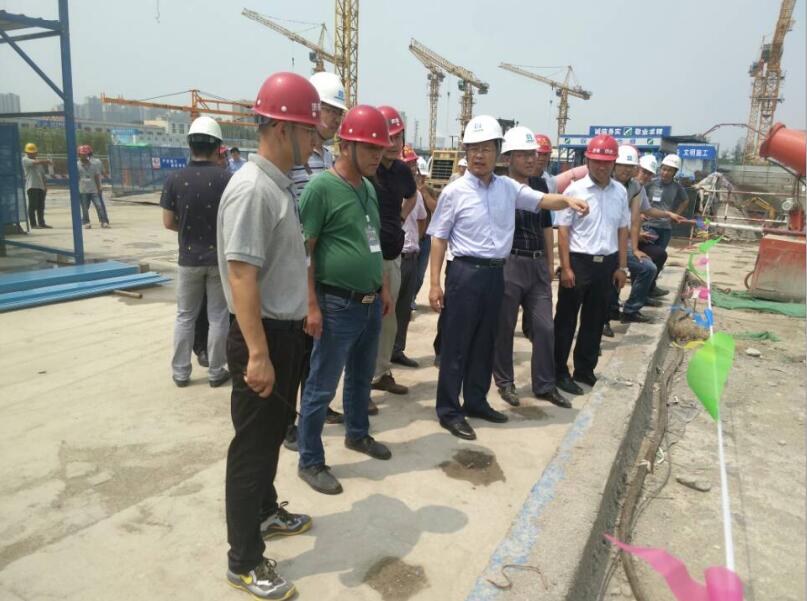 7月5日,济南轨道交通集团有限公司党委副书记、总经理修春海,副总经理杨晓东一行察看由项目管理公司监理的新东站安置一区项目施工现场。