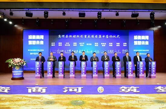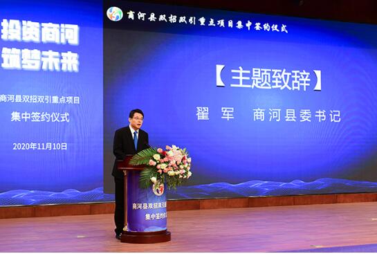 11月10日,商河县举行2020年双招双引重点项目集中签约仪式。济南市投资促进局副局长狄建利,商河县委书记翟军,县委副书记、县长袁长奎,集团总经理牟晓岩、副总经理田国锋等参加活动。