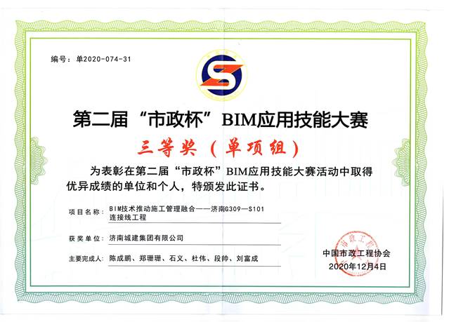 近日,中国市政工程协会举办“全国市政基础设施BIM技术交流发展大会”,会上对第二届“市政杯”BIM应用技能大赛进行颁奖。集团参赛项目经过专家评审,最终获得2项二等奖,1项三等奖。