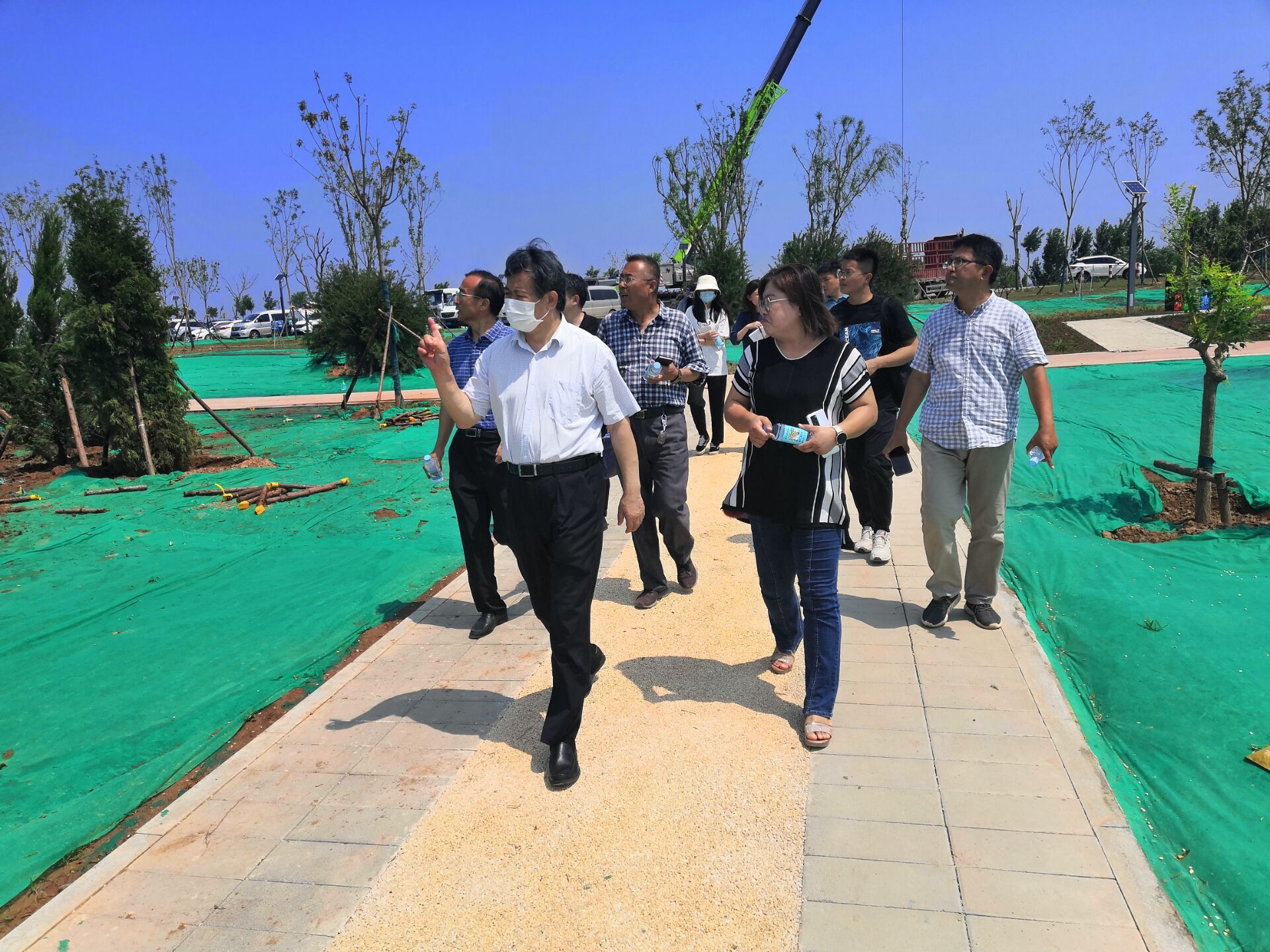 7月9日,济南市园林和林业绿化局党组书记、局长王国富到园林公司承建的黄河淤背区郊野公园指导工程建设情况。市园林局相关部门及园林公司有关负责人参加活动。