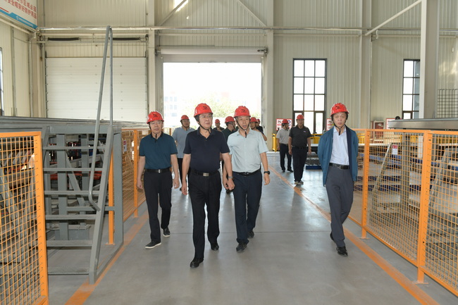 牟晓岩董事长一行先后调研参观了大型预制构件生产车间、智能化车间、智能制造科研中心、集料室、盾构管片生产车间等场所,详细听取了全自动钢筋网焊接弯曲成型生产、液压开合模具、三级布料系统、管片制造等生产工艺情况汇报。