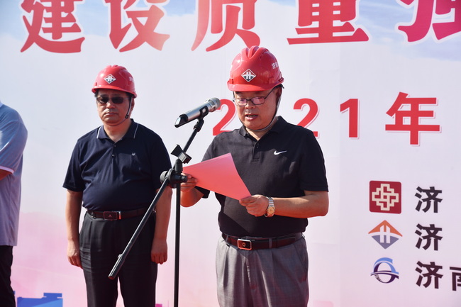 仪式上,宣读了《济南城建集团有限公司2021年“质量月”活动方案》,六分公司工程科科长董平升、市政公司副经理王俊杰分别表态发言。