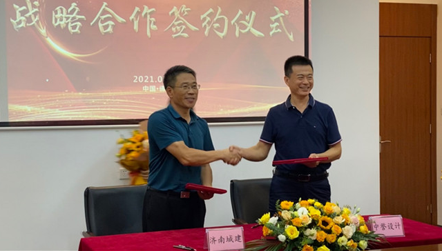 中誉设计有限公司董事长于永才介绍了中誉设计有限公司近20年来的发展历程。中誉设计有限公司从营业收入300万元的地方小型设计院,逐步发展为年营收10亿元、排名省内民营设计院前三名的大型设计单位。他希望,能够进一步巩固强化双方的合作交流,借助济南城建集团大型国企的优势地位,进一步扩展业务范围。