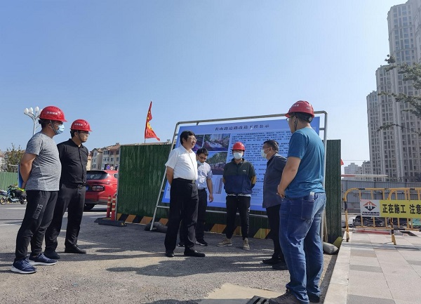 9月14日,集团党委书记、董事长、总经理牟晓岩察看一分公司承建的烟台黄山路道路改造、扬帆广场及后沙广场工程。