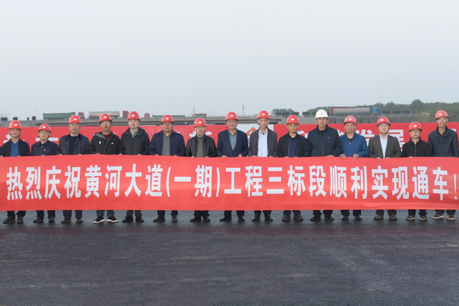 经过连续8个月、241天的努力奋战,紧紧铆定“党员做先锋,毫不放松抓安全,保质保量促进度,毫不动摇确保10月底临时通车”的总目标,集团领导靠前指挥,工程指挥部统筹调度,各参建单位全体施工人员共同努力,顺利实现了黄河大道一期工程三标段快车道临时通车的目标。一条崭新平阔的大道尽收眼底,刚刚摊铺完成的漆黑柏油马路蜿蜒向北延伸。