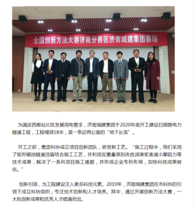 11月24日,济南日报在“科技人生”板块刊登《济南城建集团∶解锁高质量发展的“创新密码”》一文,对集团近几年的科技创新工作给予了高度认可。