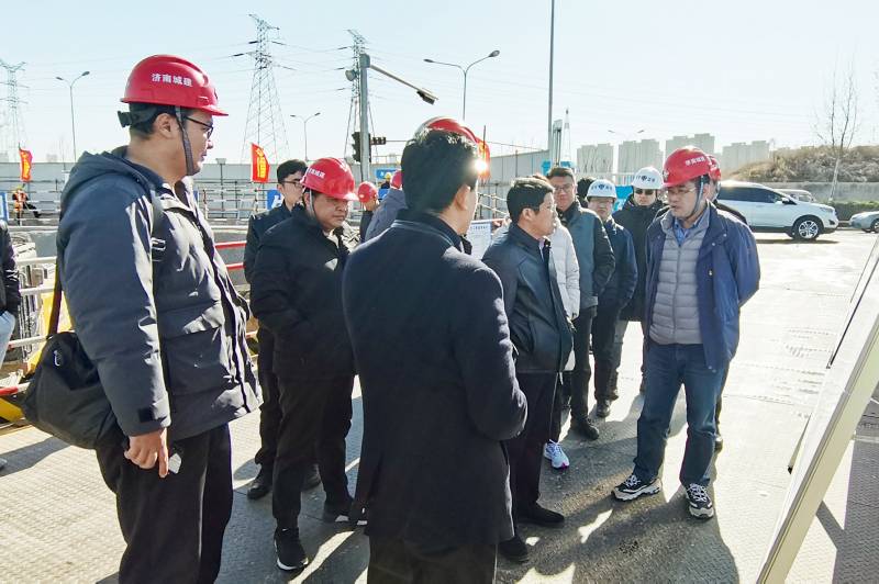2月26日上午,济南城市建设集团副总经理张建一行察看集团承建的小清河景观带齐烟揽华段洪园桥工程,集团副总经理王翔陪同。