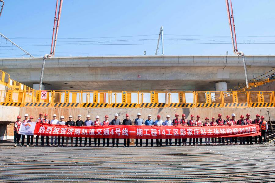 济南轨道交通4号线一期工程14工区彭家庄站顺利封顶
