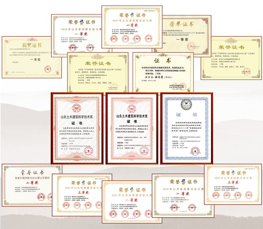 以技术为手段,以品质为目标,注重科技创新与工程技术应用,开展一系列创新举措并转化应用到施工全过程,不断提升工程建设水平和经济社会效益。近五年,获国家级成果5项,国家发明专利6项,授权实用新型专利86项,外观专利7项,省级工法25项;荣获中国市政工程协会、中国建筑业协会QC成果一等奖8项、二等奖1项,山东省工程建设“泰山杯奖”6项,省建设科技创新成果3项,省创新方法大赛成果9项。以创新驱动实现高质量发展,打造市政园林行业全产业链智慧创新高地。