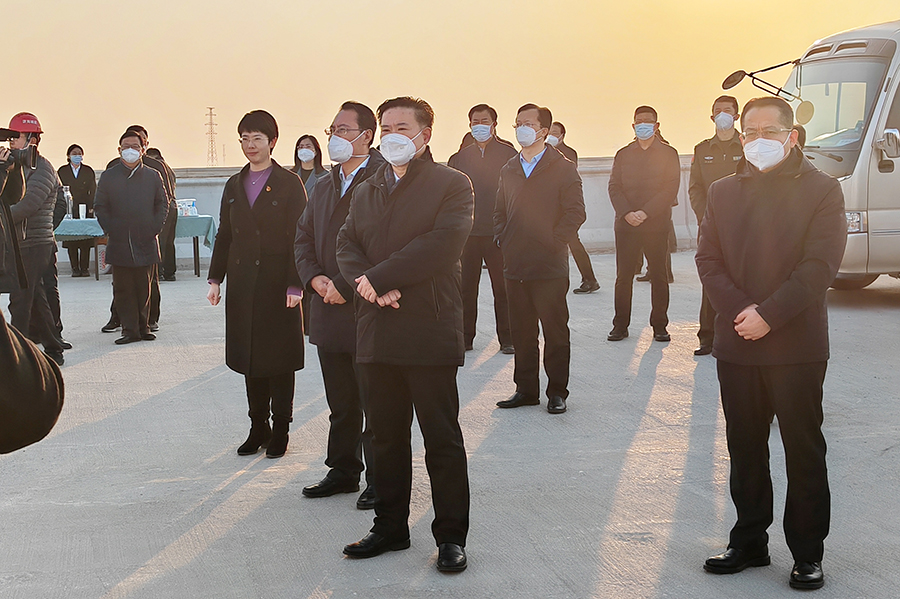 1月31日上午,禹城市委书记、德州高新区党工委书记、管委会主任滕海强到集团承建的济南绕城高速公路二环线西环段项目跨青银高速主线桥施工现场察看工程建设情况。