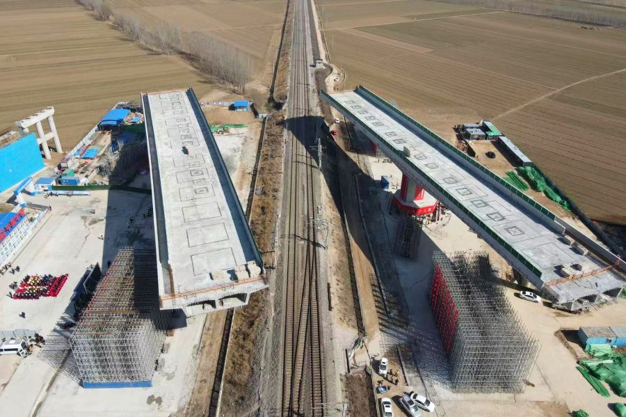 集团济南大西环项目跨邯济铁路转体桥顺利完成转体