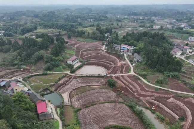 四川内江东兴区2025年高标准农田项目全速推进田块整治与灌排设施铺设