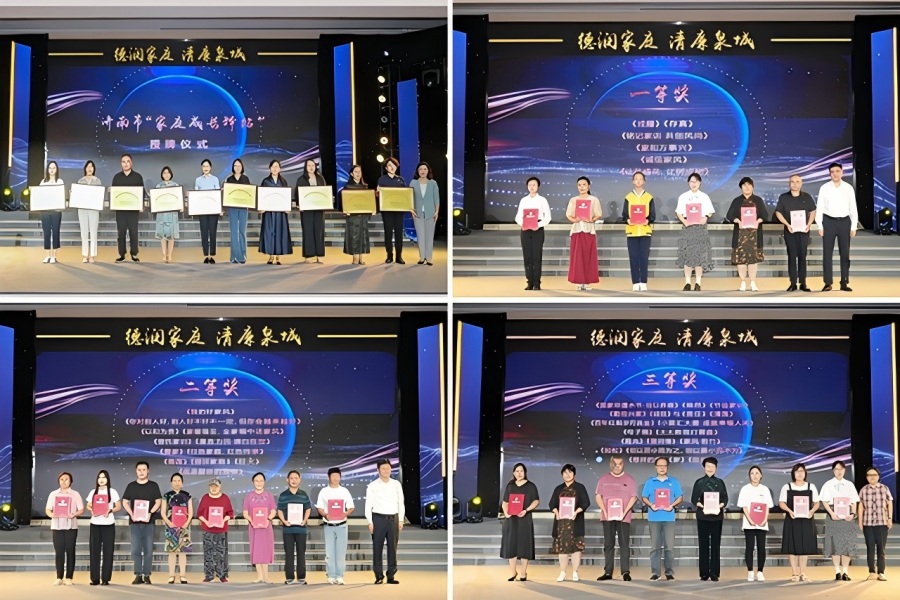 活动现场,市委常委、市纪委书记、市监委主任杨光忠,市委常委、统战部部长、市总工会主席马保岭,市政协党组成员、省管副厅级干部吕凤华分别为“小家传大爱 幸福满人间”——好家教好家风好家训作品征集活动获奖者颁奖。市妇联党组书记、主席田迎为济南城建集团等首批命名的“家庭成长驿站”单位授牌。