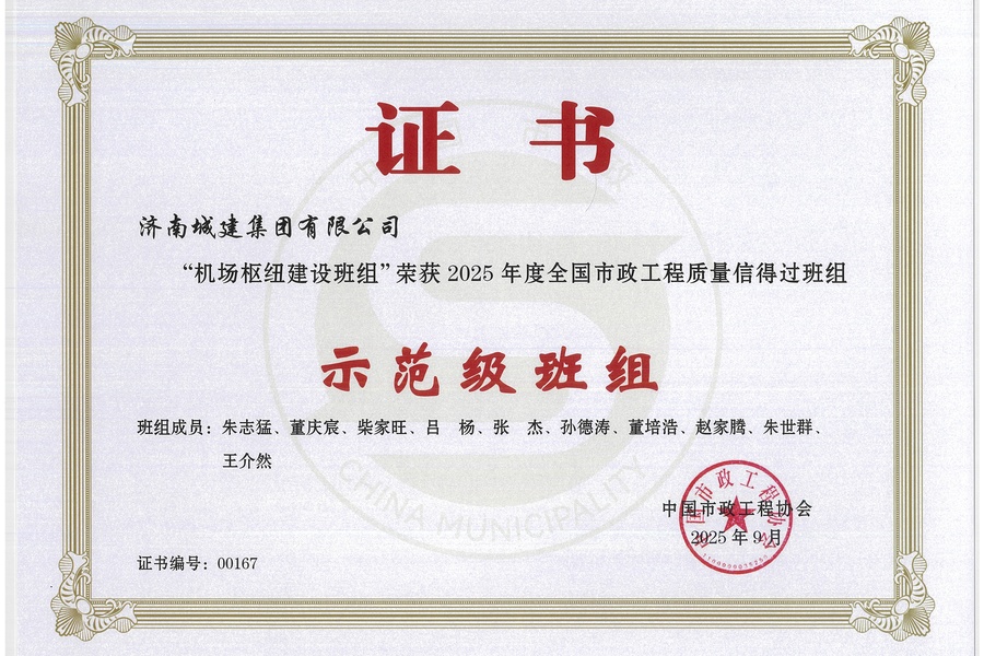 机场枢纽建设班组荣获中国市政工程协会示范级班组